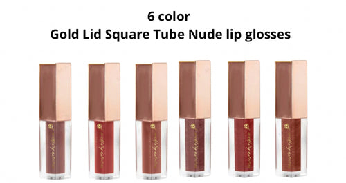1 of 6 colors Gold Lid Square Tube Nude lip gloses