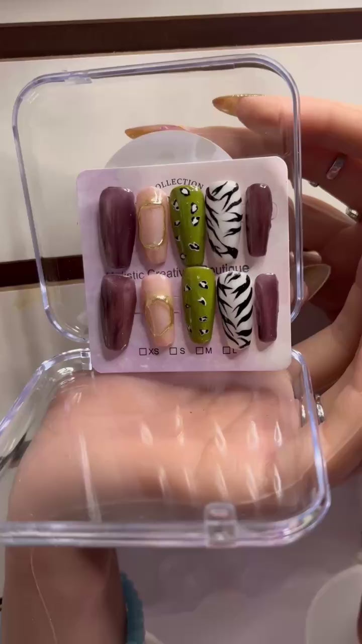 Stand out on any occasion with our **Savannah Dreams**, high-quality press-on nails featuring GelX technology, inspired by the vibrant beauty of the safari theme. With a design that combines earthy tones, olive greens, subtle animal prints, and nature details, these nails capture the essence of jungle adventure and the tranquility of the safari landscape. Their long-lasting, easy-to-apply, natural-looking finish allows you to achieve a bold and sophisticated style in minutes. The kit includes everything you need for simple and safe at-home application: files, alcohol, high-strength adhesive, and premium-quality nails. Bring the magic of nature into your hands and feel the adventure in every move.